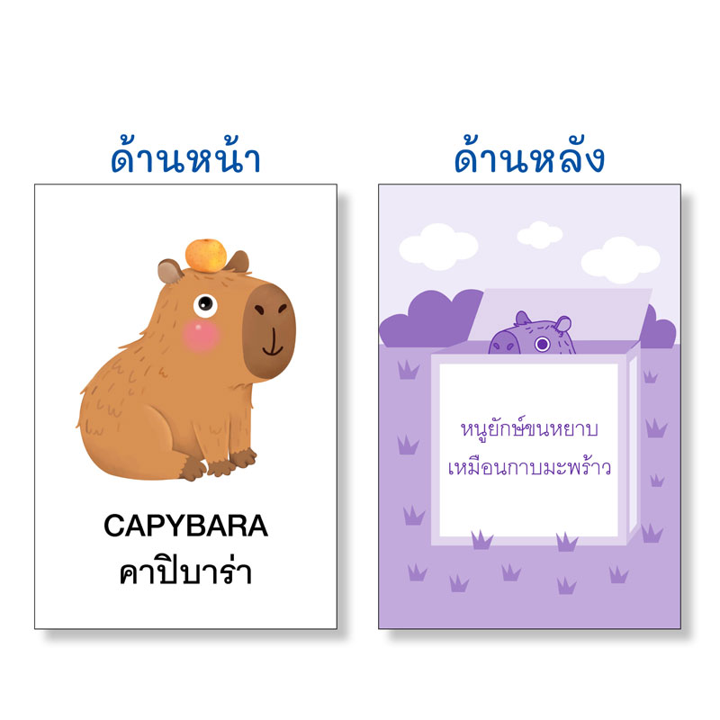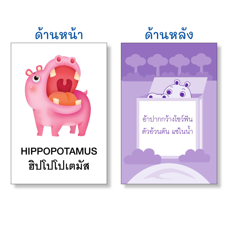 มารู้จักสัตว์น่ารักน้อยใหญ่ 48 ชนิด ด้วยบัตรภาพแสนน่ารัก สีสันสดใส เรียนรู้คำศัพท์ภาษาไทยและภาษษอังกฤษ สนุกคิด ทายปริศนาด้านหลังบัตรภาพ สัตว์อะไรเอ่ยที่ซ่อนอยู่ในกล่อง