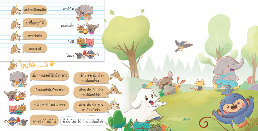 เรื่องย่อ : ลูกลิงนัดเพื่อนมาเล่นตะล็อกต๊อกแต๊กด้วยกัน ระหว่างที่เล่นกันอย่างสนุกสนาน จู่ ๆ ฝนก็ตกลงมา ช้างจึงเด็ดใบตองมาให้เพื่อน ๆ คลุม ทันใดนั้นลมก็พัดแรงจนใบตองหลุดปลิวไป เพื่อนสัตว์ร้องจ๊าก เปียกมะล่อกมะแล่กซะแล้ว